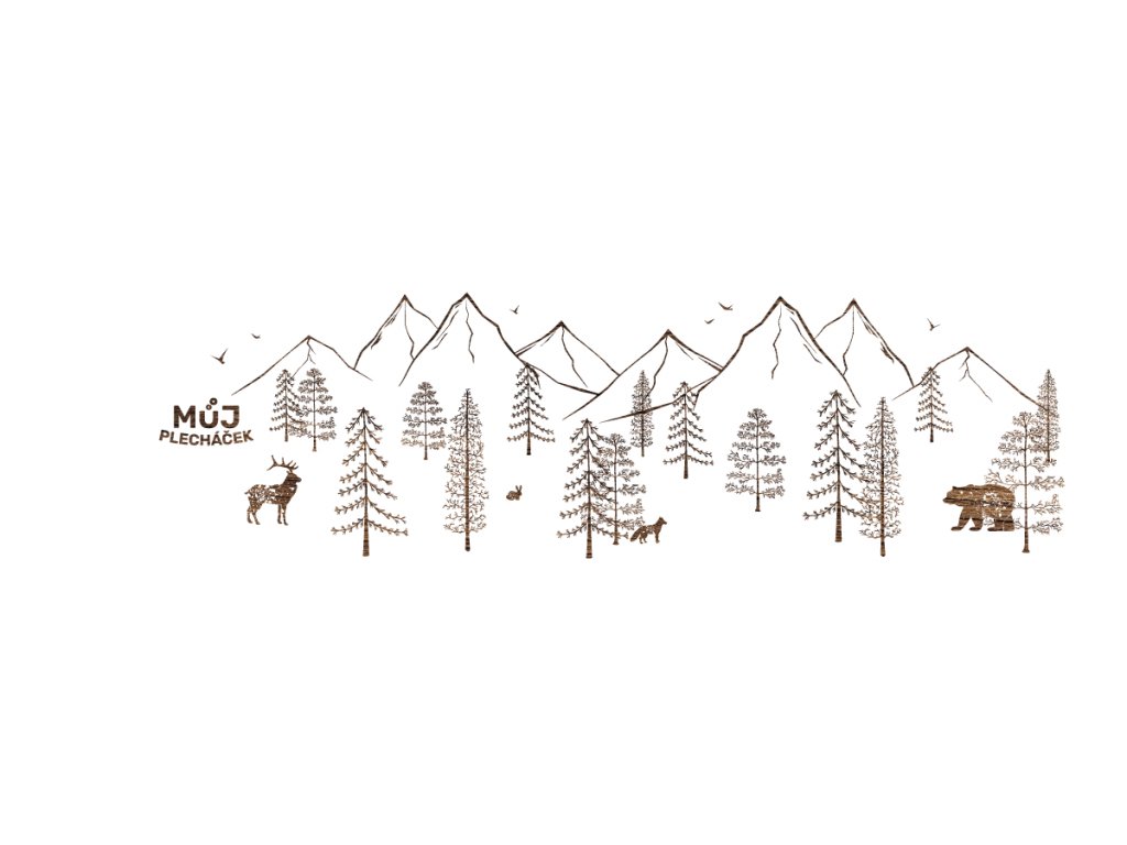 Design k tomuto plecháčku vznikl oříznutím fotografií kůry a spadaného listí do podoby podzimního jelena.