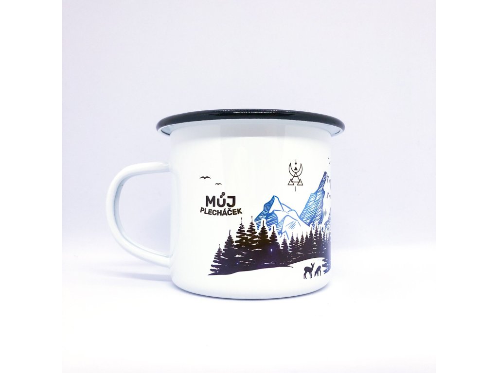 • Tradiční smaltovaný plecháček na popíjení horkých i chlazených nápojů