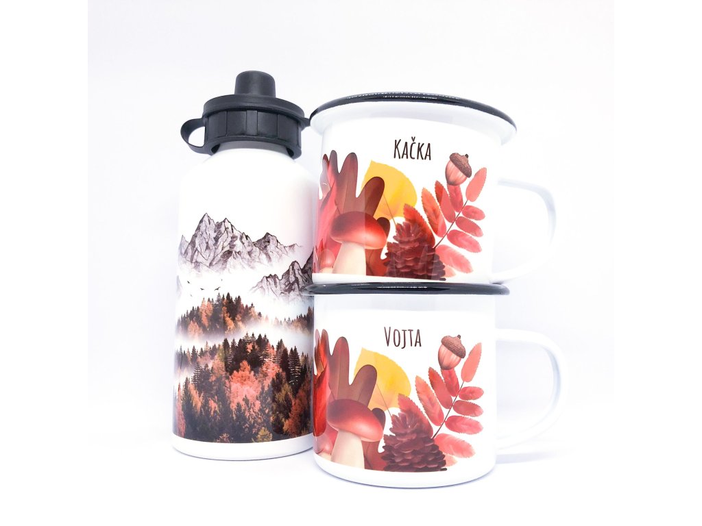 Hliníková láhev 500ml + dva hrníčky se jménem na přání