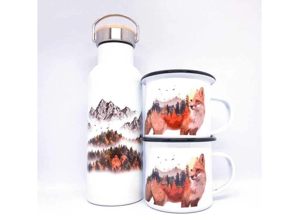 Nerezová termoláhev bamboo + dva hrníčky se jménem na přání.